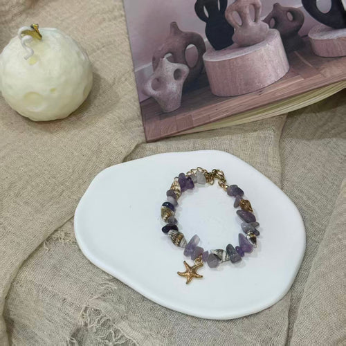 Coastal Vibes Seashell Starfish Bracelet Natural Stone Conch Beaded Bangle